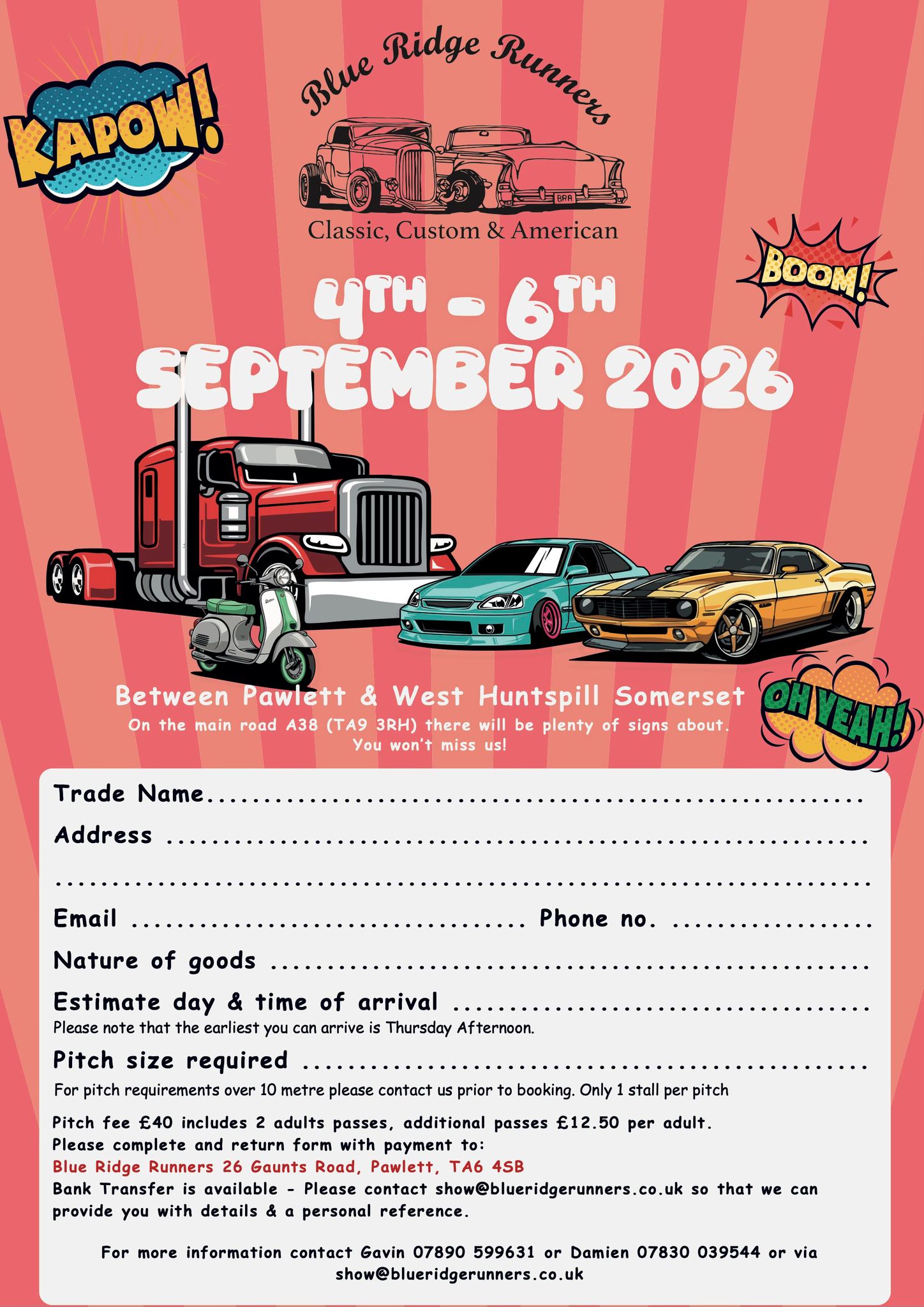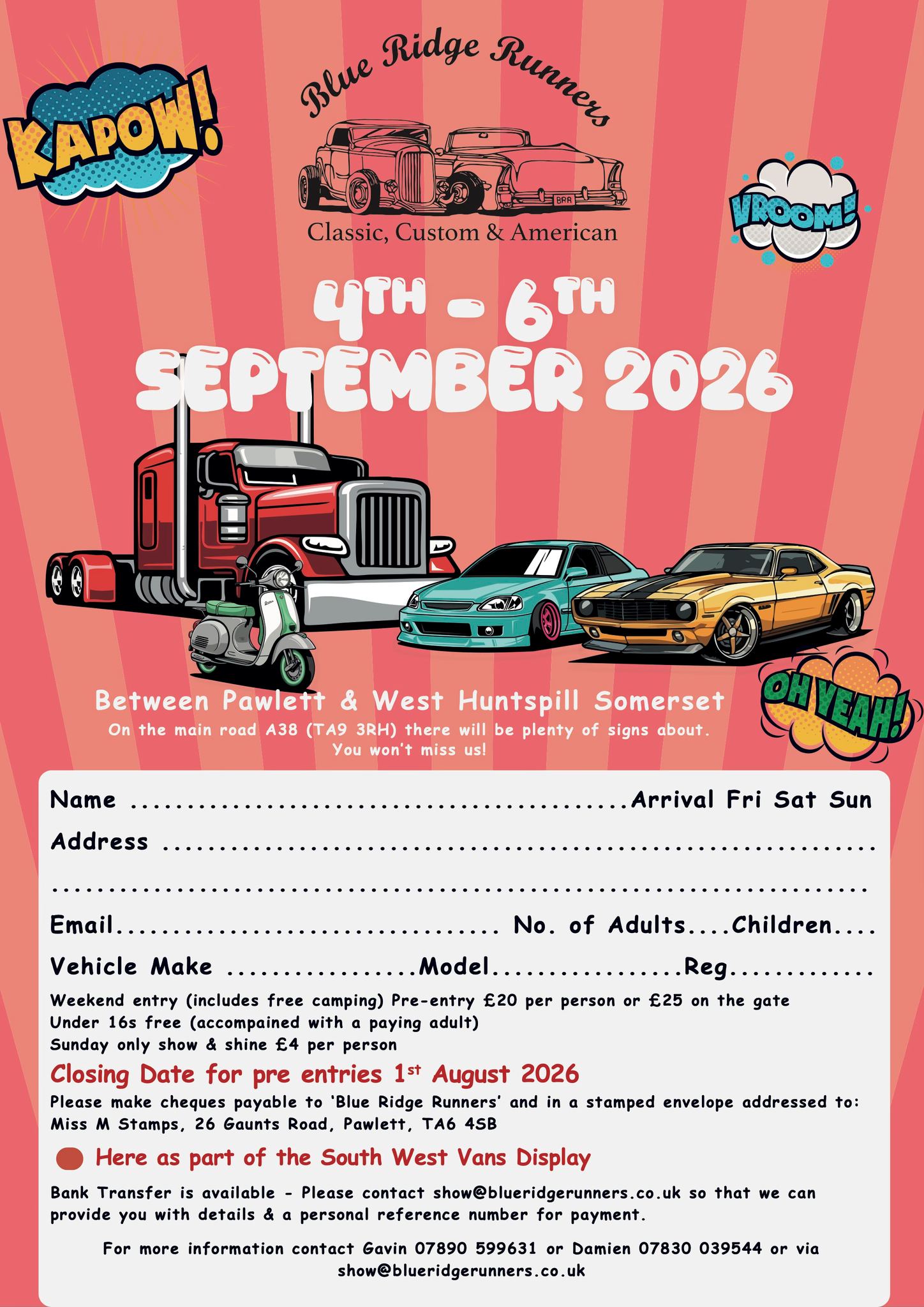 If you would like to attend our show and exhibit a vehicle or reserve a pitch for the weekend,